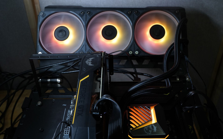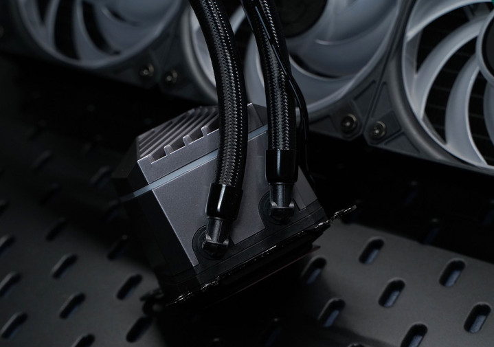 A15 360系列水冷配备高性能水泵,转速高达3400rpm每分钟,内部轴承采用陶瓷材质,兼顾了散热效能与静音运行两大需求。通电后还有艳丽的RGB灯效!