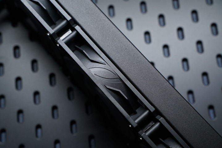 这风扇一看就大有来头,名为CycloBlade 9,具有9片扇叶和环形导流罩设计,相比传统分体式扇叶能带来更大风量和风压,风扇转速区间在500~2050rpm。