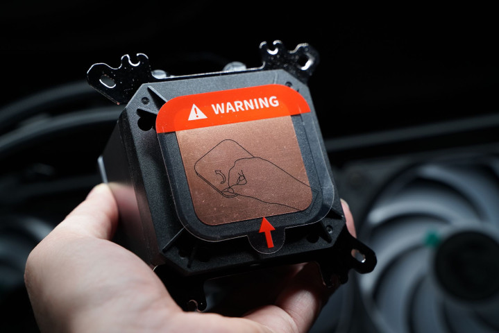 是冷头底座也只得一说,是全系一代无螺丝全铜设计,显著增强了防水性能。配备精密的0.1mm微通道设计,有效吸收CPU热量,和高性能水泵协同工作,迅速散热,有请提醒,底座带有防刮花贴膜,使用前记得撕掉。顺带一提水冷头预装的扣具是AMD和intel双平台通用,无论你是用LGA1700/1851还是AM4/5接口的平台均能轻松上机。